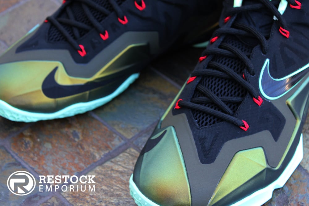 The Nike LeBron 11 "King's Pride" was the first colorway of the Nike LeBron 11 to release in the US. Inspired by the king of the jungle, the “King’s Pride” colorway has a dark loden upper and floral print on the collar lining that reflects wildlife pride and helps depict LeBron James' heart of a lion and fearless, determined play.